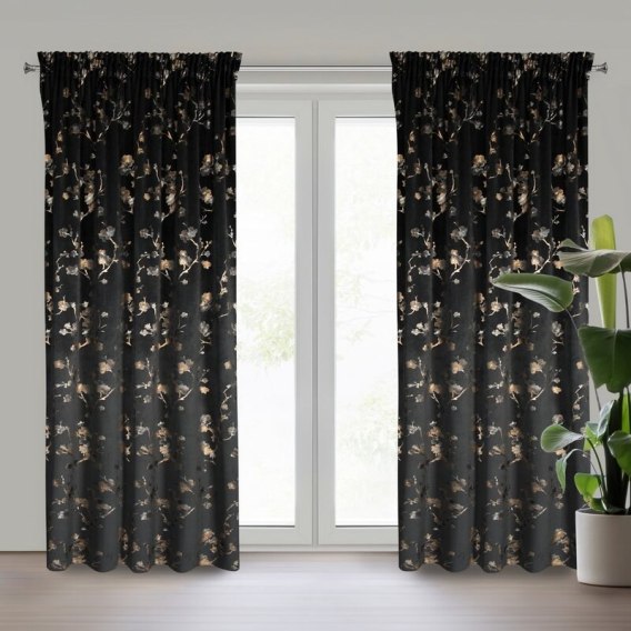 ZASŁONA GOTOWA SELENA NA TAŚMIE 140 X 270 CM CZARNY EUROFIRANY
